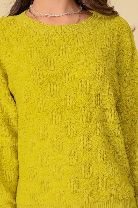 The basket weave pattern sweater offers a timeless and textured look, adding depth and style to any outfit. Crafted with intricate weaving, it boasts a unique visual appeal while providing cozy warmth. A versatile wardrobe essential that effortlessly blends comfort with sophistication.