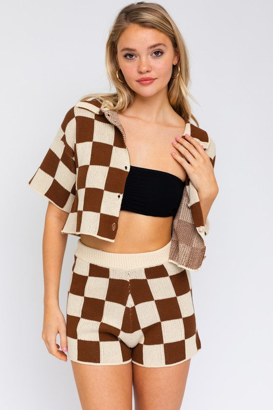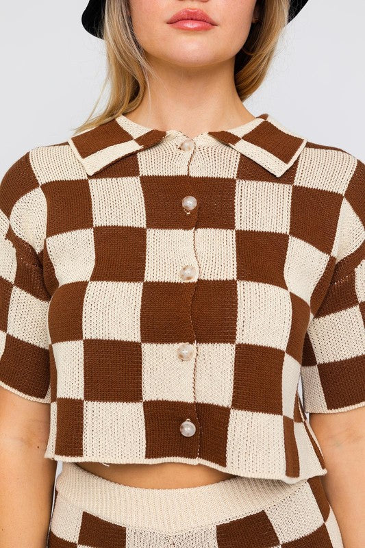 Introducing our Short Sleeve Crochet Top with a button front, a stylish and versatile addition to your wardrobe. This top features a classic crochet design that adds a touch of boho charm to your look. The button front adds a trendy and practical detail, allowing for easy wear and customization. With its cropped length, it's perfect for pairing with high-waisted bottoms.