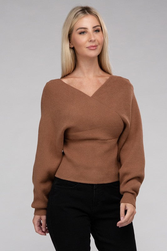Elevate your sweater game with this high-quality viscose pullover. Crafted for both comfort and style, this sweater features a unique cross-wrap design on both the front and back, giving it a fashionable edge. The use of viscose ensures a luxurious and soft feel against your skin.